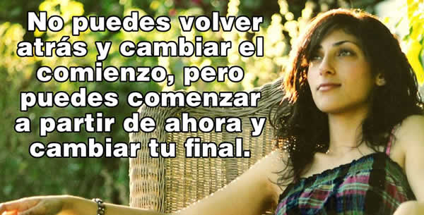 No puedes volver atrás y cambiar el comienzo, pero puedes comenzar a partir de ahora y cambiar tu final. Final es lo que es último o que acaba o concluye una cosa.