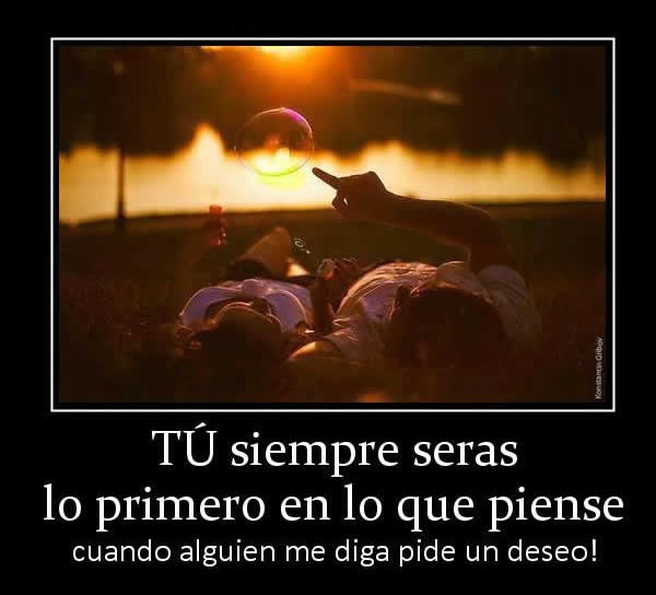 Tu siempre serás lo primero en lo que piense, cuando alguien me diga pide un deseo. Un deseo es un interés o apetencia que una persona tiene por conseguir la posesión o la realización de algo.