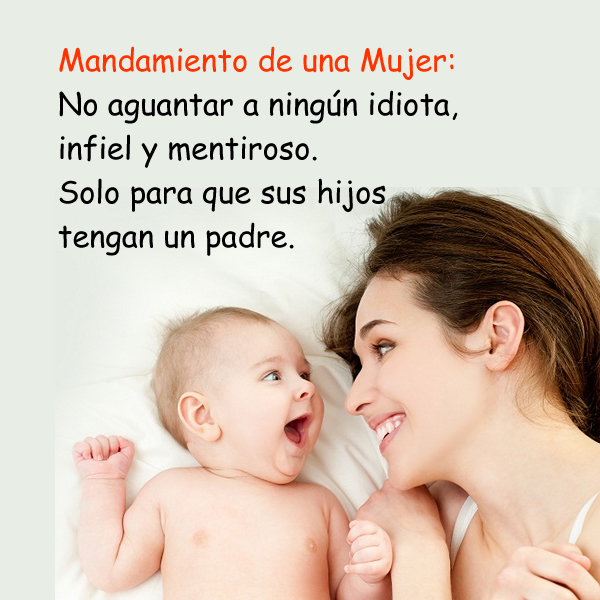 Mandamiento de una Mujer: No aguantar a ningún idiota, infiel y mentiroso. Solo para que sus hijos tengan un padre. El mandamiento es la orden dada por alguien con autoridad para hacerlo.